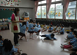 食後の少しの時間でも、リズムバリエーションやクリエィティブ・ムーブメントを実施。 |