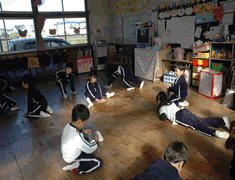 すみれ組さんです。 もうすぐ冬休み。全員でお部屋の大掃除です。 |