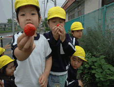 今日は年長さんが遠足にでかけ、ちょっぴりいつもより静かな幼稚園でした。 遠足を15日に予定している年中年少さんは、今日はいちごつみをしたり、英語の時間であそんだりしました。 いちご狩りやぶどう狩りなど、普段買って食べることが多い果物なども、 自分で収穫するのは特別楽しいものです。 今日のいちごつみは少しだけでしたが、パック詰めのいちごにはない格別のおいしさがあったと思います! |