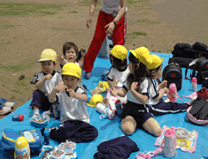 思いっきり遊んだあとは、急ぎ足でバスまで、 初めての遠足にとってもハイテンションなこども達でした。 帰りのバスからは、「スー、スー」とういう寝息が静かに流れていました。 |
