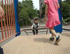 「園長先生、写真撮ってよ!」の声に、「はい、いくよ!」と答えて、一枚。 食後は、総合遊具のところで思いっきり遊びます。 引率のママさんが数名いらっしゃったのでの大変助かりました。 しばしご覧ください。 |
