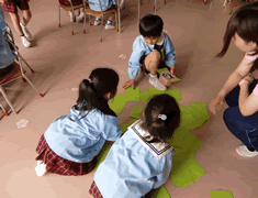 年長になって初めての「英語あそび」ですが、昨年度同様元気にはりきって遊ぶことができました。昨年度のおさらい(季節や天気、月などしっかり覚えていましたね。今日は動作を表す英語を使ってゲーム感覚で楽しみました。新しいことにもどんどんチャレンジしてもっともっと楽しみましょうね。