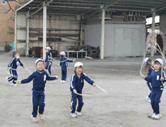 年長組の体育です。みんな、冬休みを境に縄跳びがとても、上達しましたね。 |