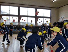 今日は各クラスの保育室で体育を行いました。年長さんは縄跳び、年中・年少さんは紅白玉や、ボールを使って遊び、各クラスから歓声が聞こえてきました。 |