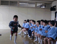 今日は、今年度最後のお誕生会。2月、3月生まれのお友達をお祝いしました。もうすぐ卒園の年長さんにとっては最後のお誕生会。今日も笑顔いっぱいの楽しい時間となりました。 |