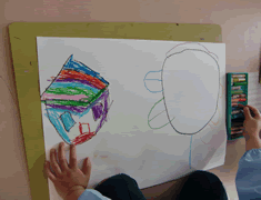 年長さん、描画の時間です。 |