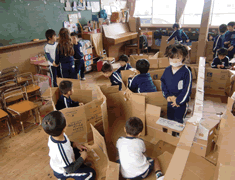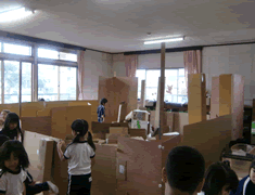 椅子や、机も作るそうです。小さい体で自分より大きな段ボールを一生懸命動かす姿は とてもかわいらしい光景でした。 |