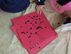 年少組さんは、昨日作ったてんとう虫模様の紙を
