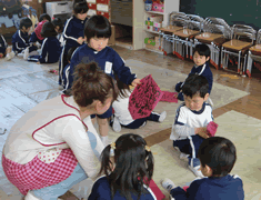と教えてあげる子や、「早く芽が出ると良いな」なんてつぶやいている子がいました。 |
