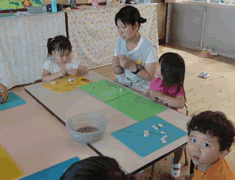 いちごルームのお友達は粘土遊び。みんなでおにぎりを作っていました。 もちろんお裾分けもたくさんくれました。お腹がいっぱい!とっても幸せな気持ちになれました。 |