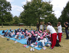 あいかわ公園に到着しました。まずは、ペアのお友達と手をつなぎます。 |