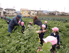 幼稚園の裏の畑で大根抜きをします。 |
