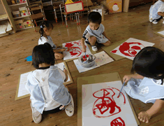 みんなで、仲良くクレヨンを使ってお絵かきです。 |