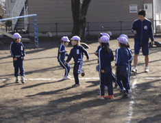今日は昨日とはうって変わって、気持ちの良い日差しが射していましたね。みんなの大好きな体育が外で出来るか心配でしたが、楽しく元気いっぱいお外で体を動かす事が出来ました。 |