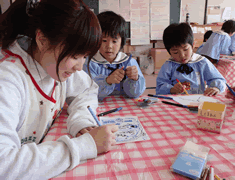 できたお友達は、先生に○をもらって、にっこにこ。 |