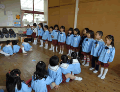 そろそろ園での生活にも慣れてきたお友達、今日はお楽しみ会。 |