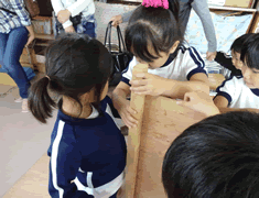 今日は、年中組のお友達がのこぎりを使って遊びました。 最初はぎこちなかったのこぎりの音も時間がたつにつれてギコギコギコとリズミカルに 聞こえるようになりました。 |