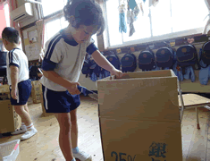 2歳児クラスでは廃材を使って遊んでいました。 |