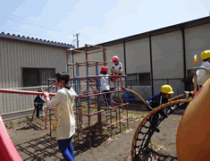 先生から遊具の遊び方を教えてもらい、 待ちに待った戸外あそびをしました。 |