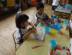 年少・中組のお友だちはスイミングに元気に出かけていきました。 午前中は、年長組だけでなんだかさみしい幼稚園でした。 |