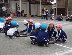 「相手が転んでしまったら一度、引っ張るのをやめようね」 先生との約束もばっちり守ることができました。 |