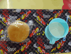 2歳児クラスのお友だちは描画「目玉焼き」 筆の使い方も上手になりました。 |