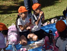 昼食後はどんぐり拾いに夢中になっていたお友だち。 |