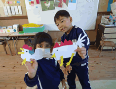 午後からは、鍵盤ハーモニカを行いました。 ♪気球に乗ってどこまでも♪みんなで最後まで合わせるのは初めてだったのですが とても、上手にできて先生から「素晴らしい!」と、拍手をもらいました。 |