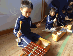 年中すみれ組 歌とボックスホーンにわかれ 演奏をしました。 |