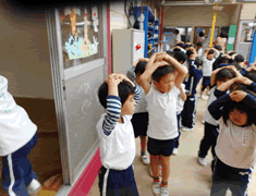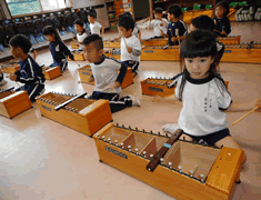先生のシンバルに合わせて音をだしたり、止めたり。 |