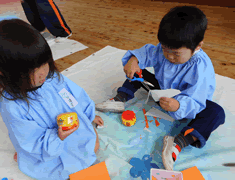 今日は年長組のお友だちが木工あそびを楽しみました。 年少・中組の木工あそびを羨ましそうに見ていた年長組さん、お待たせしました。 |