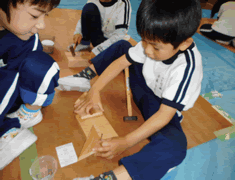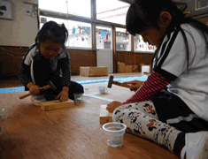 先生の「始めていいよ」の声を合図に金づちの音が聞こえてきました。 |