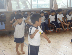 タンブリンの音を注意深く聞いて 身体を動かしたり止まったり。 |