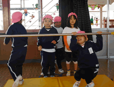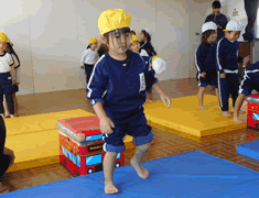 年少組のお友だちは跳び箱。 |