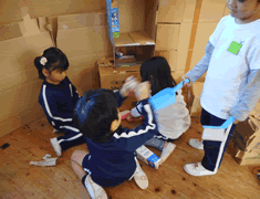 楽しかった造形あそび。今日は、みんなで片づけをしました。 「また、遊びたいね」 片づけながらそんな声が聞こえてきました。 |