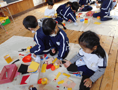 壁面製作を行っていた年少組のお友だち。 クラスのみんなで 作る最後の壁面です。 どんな壁面ができあがるのかな・・・今から楽しみです。 |