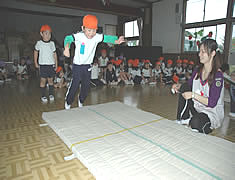 ジャンプなどを遊びの中で意図的に作り出して、行っています。