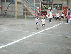 普段の保育の自由活動の中でも、ボール投げやかけっこ、とこまで飛べるか、
