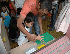 ![]() お父さんに手伝ってもらい |