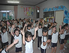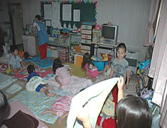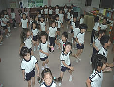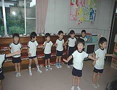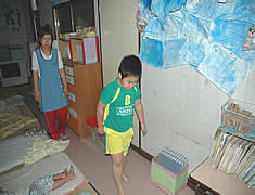 ![]() パジャマを脱いで、靴下、シャツをはき |