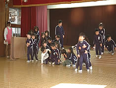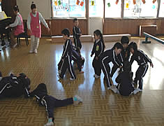 面白い表現のお友達は、皆の前でやってもらいます。すると他にもたくさんの表現が出てきます。 |