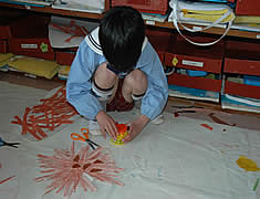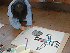 普段から絵に慣れている子は、絵の具で描き終わったあとも、更に細かいところまで描いて行きます。 |