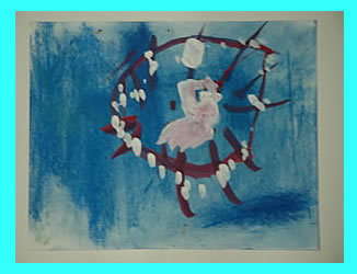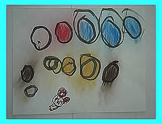 墨の筆を使って、丸を描きますが、年少にとっては、丸の形にするのも一苦労です。 |