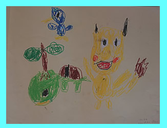 普段使い慣れているクレパスで、大きくなったら何になりたい?と尋ねると、お花屋さん、バレー、サッカー、野球の選手、考古学者・・・など具体的なもの、ポケモントレーナー、オーガンダムなどテレビのアニメに影響を受けているもの、お父さんのお仕事を一緒に手伝いたいなど、少し、気持ちがグッときてしまうものなど、いろいろな想いを表現してくれました。 |