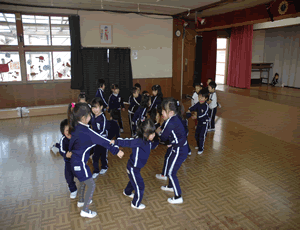 とっても、仲良しになり手を繋いで踊ります。 |