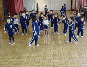 とっても、仲良しになり手を繋いで踊ります。 |