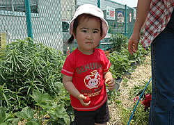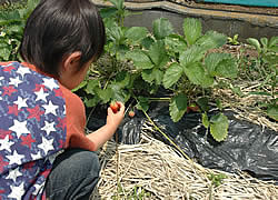 最後に、園の畑でいちごを摘み、春の味覚を堪能していただきました。今日もゆったりとした時間が過ぎていきました。次回のぬたくりは、6月3日(火)雨天、6日(金)です。内容については、昨年のホームページをご覧下さい。当日は、おかあさんもご一緒に思いっきり遊んで、塗りたくって下さい。子どもと同じ視線で、思いっきり遊ぶことで、参加者同士(親子、友達)の親近感も深まり充実感を味わって頂けることと思います。絵の具がついても良い服装で、着替えを忘れずにお願いします。 昨年の様子は こちらから